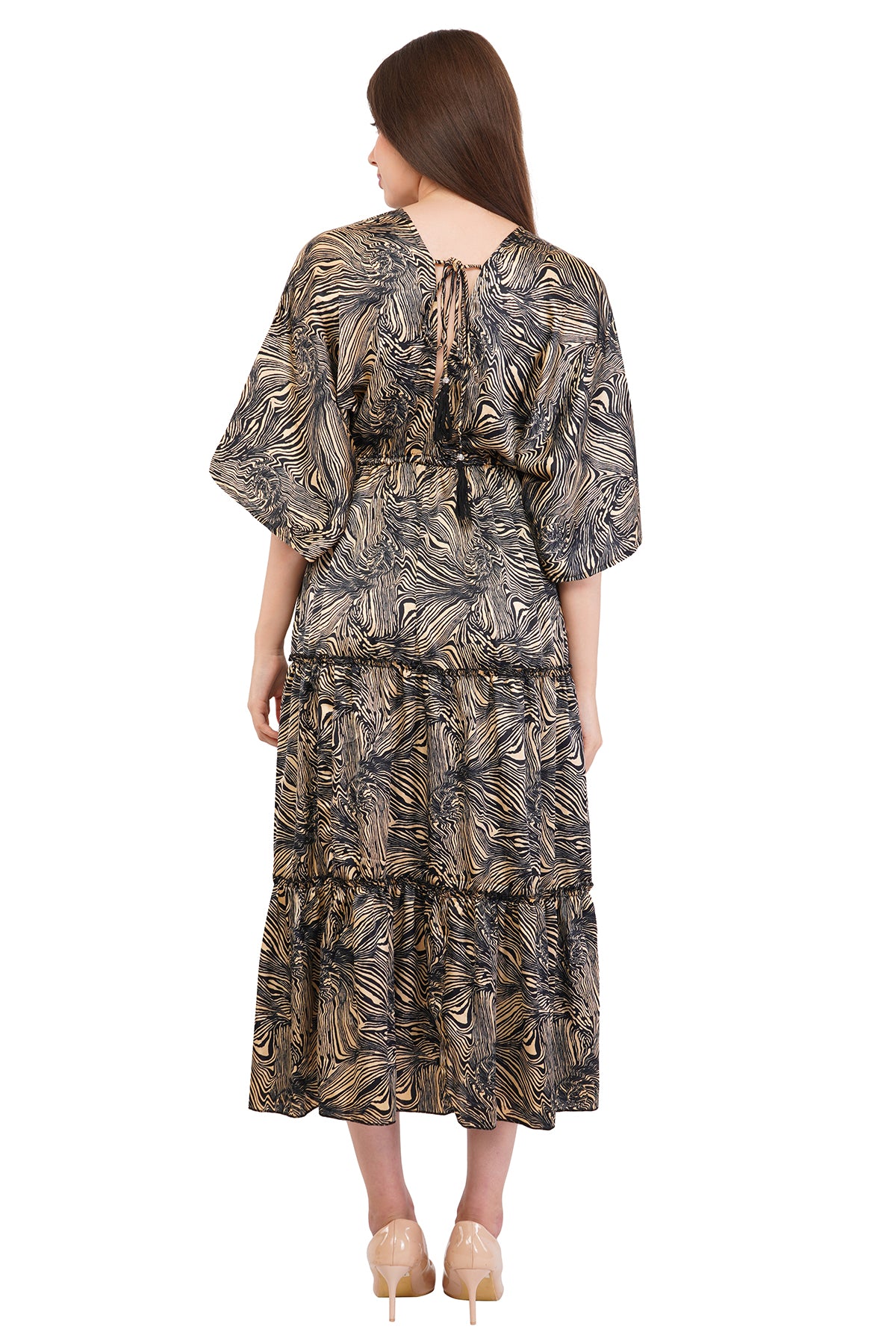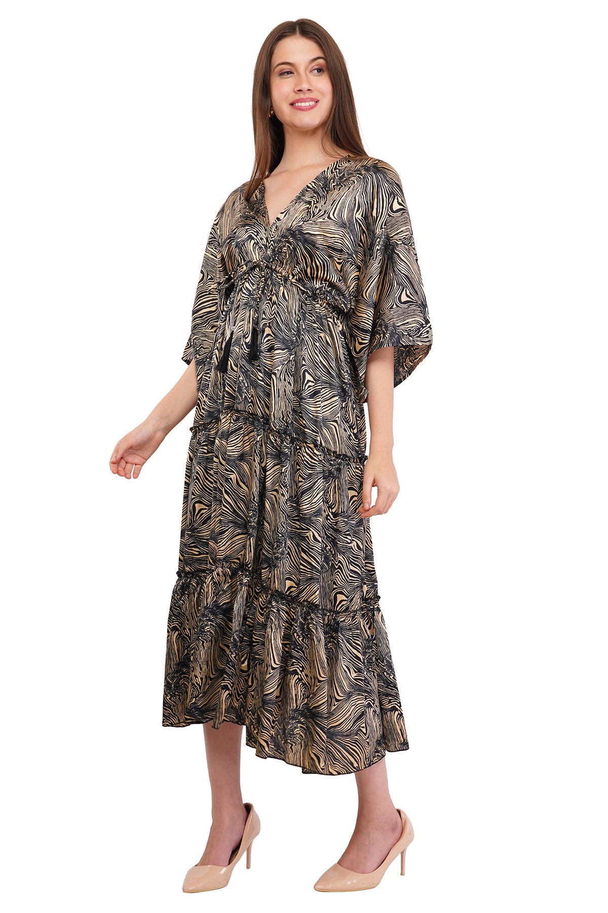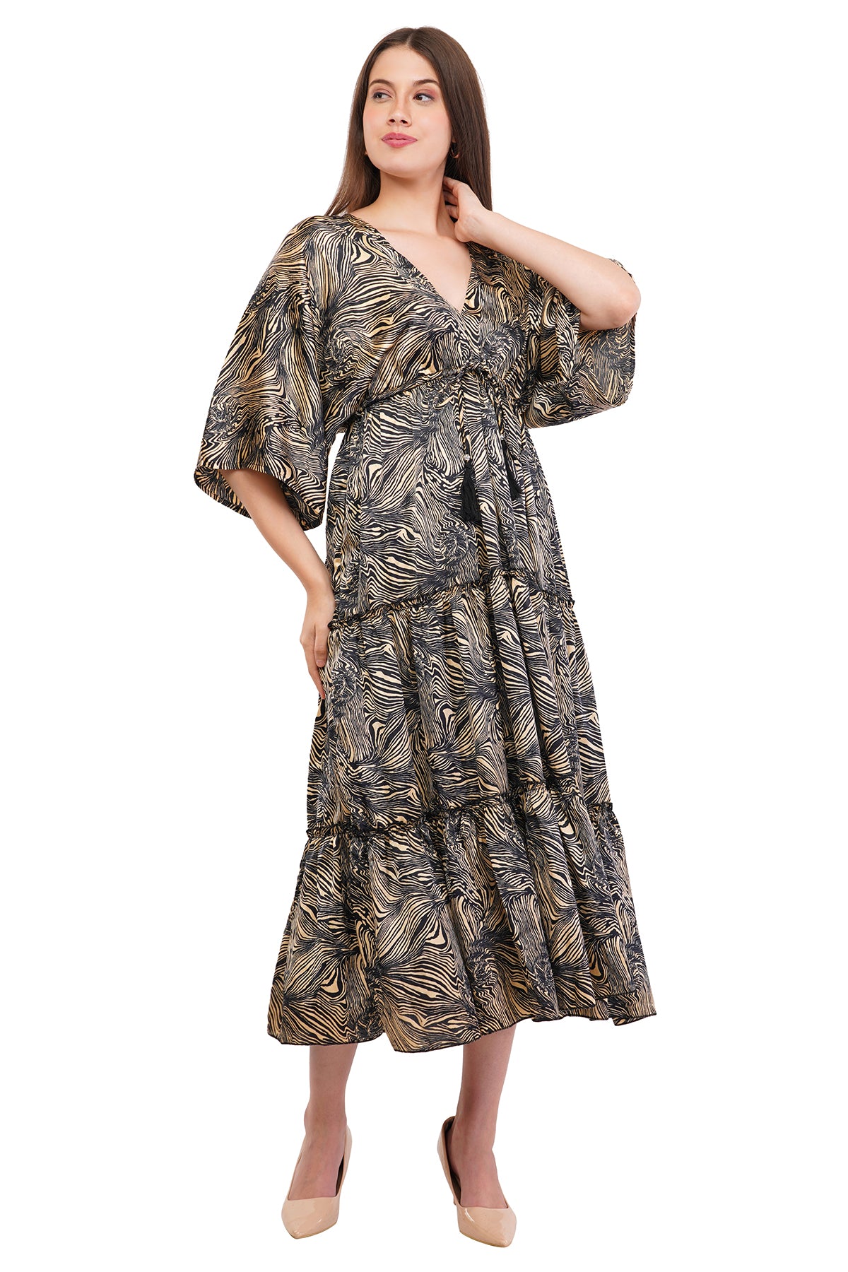 Versatility is a hallmark of the flared long dress. It can be styled with strappy sandals for a relaxed daytime look or paired with heels and statement jewelry for an evening affair. Its classic design ensures it remains a staple in fashion, offering a flattering, stylish option that effortlessly transitions between different occasions.