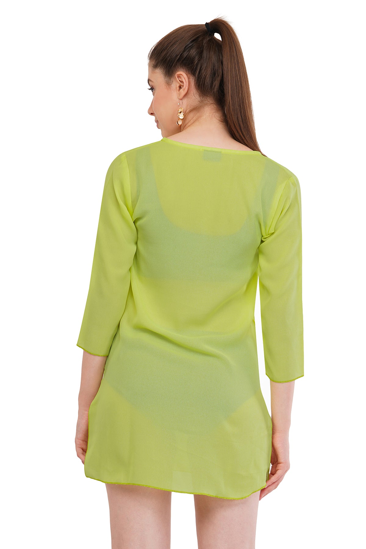 Turn heads with this sun-kissed sensual Beach Throw Kurti—its delicate design and breezy fabric make it the perfect complement to your beach ensemble. This full-sleeve V-neck sensual Beach Throw Kurti is designed with a lightweight and breathable fabric that is suitable for beach or pool outings. This fabric is moisture-wicking, which helps absorb sweating fast and keeps you cool & comfortable always.