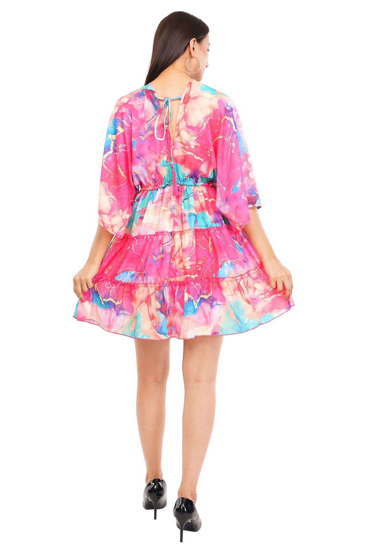 Pair this eye-catching dress with sneakers, elegant heels or embellished sandals and complement with bold accessories such as statement earrings or a chic clutch. With its blend of fun and elegance, the short party dress with flared layers ensures you’ll capture attention and turn heads at any event.