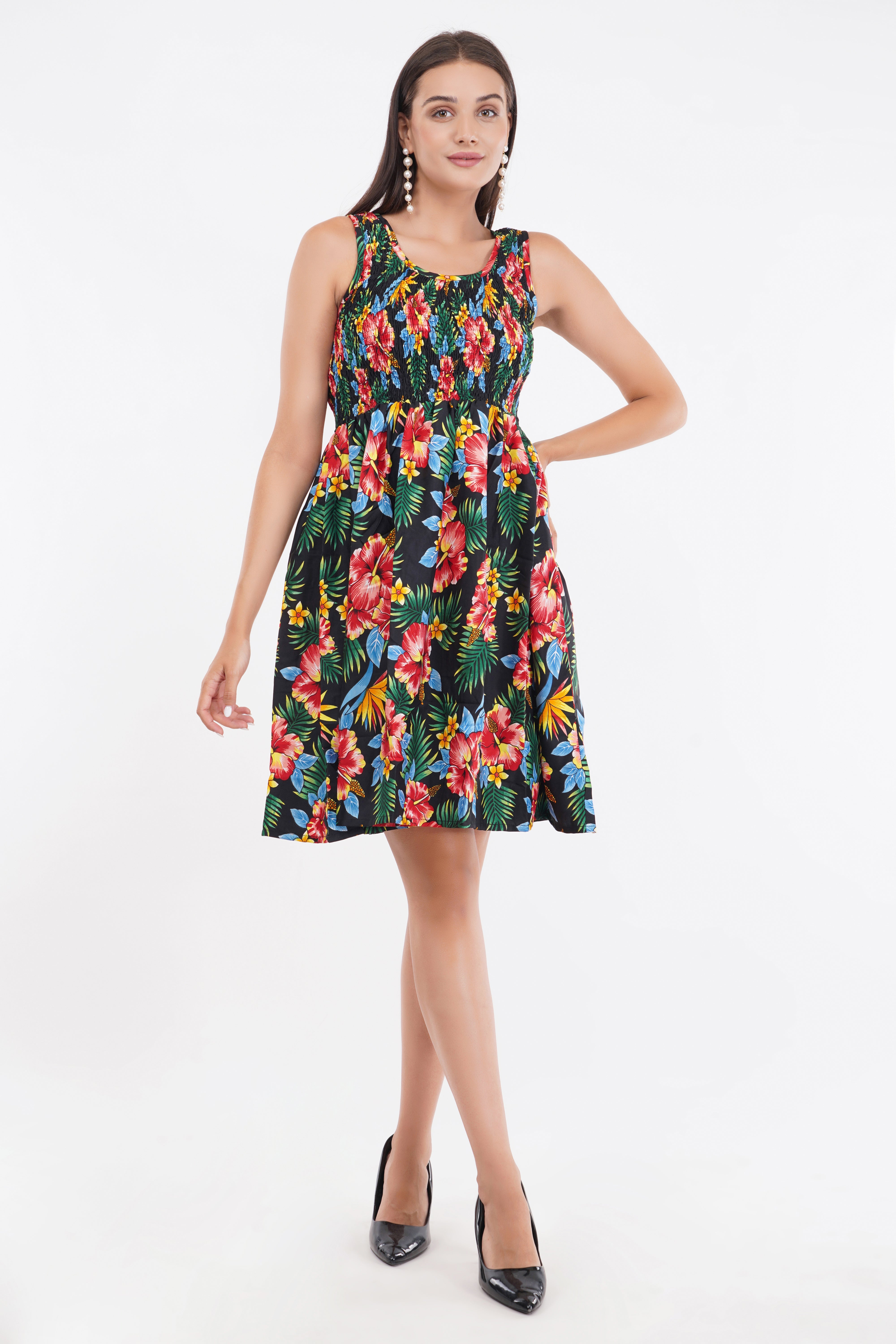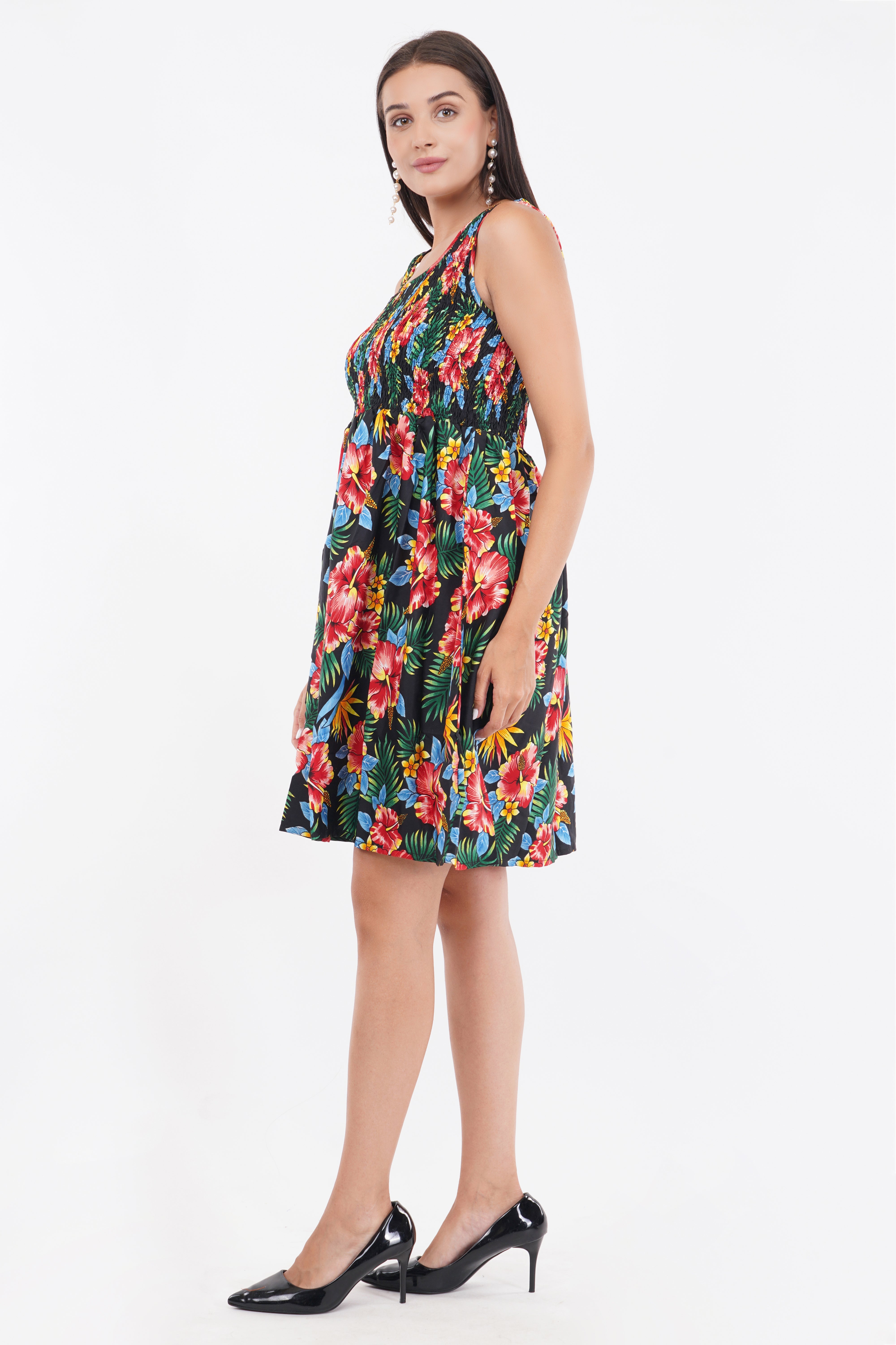 Introducing our new smocked dress: a stunning piece adorned with beautiful smocking details on the front and back panel, designed to offer a perfect fit and timeless style. This sleeveless, round neck gorgeous Short Smocked Dress is designed with a lightweight and breathable fabric that is suitable for Lunch, Dinner, Beach or Pool outings with friends. This fabric is moisture-wicking, which helps absorb sweating fast and keeps you cool & comfortable always.
