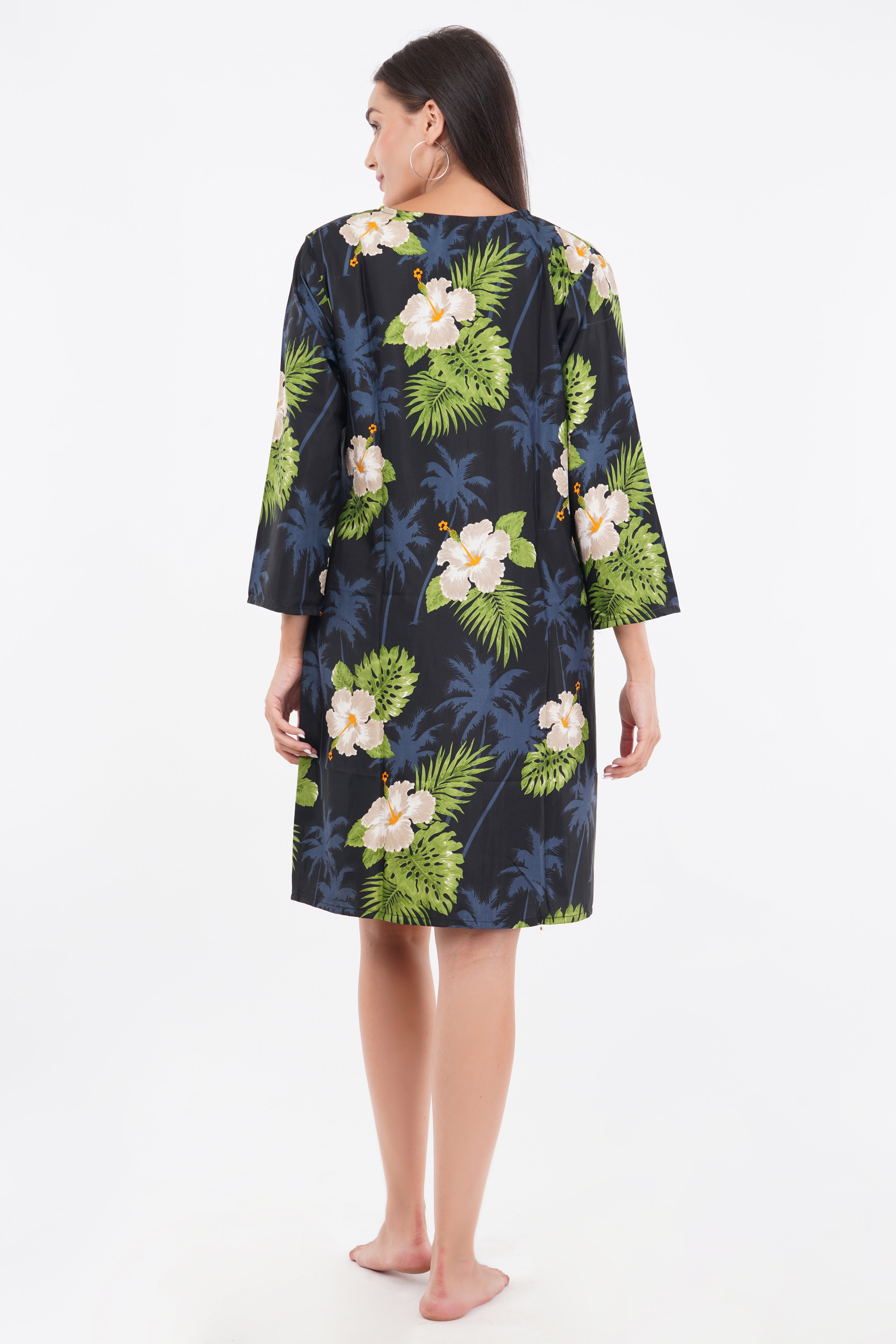 This front open tropical white floral printed kimono, has a V-neck, three-quarter sleeves and a belt closure. Catch the chic coastal breeze in this open kimono, designed with a wrinkle-free lightweight and breathable fabric, a beautiful piece that adds a touch of sophistication to your swimwear while keeping you cool and covered
